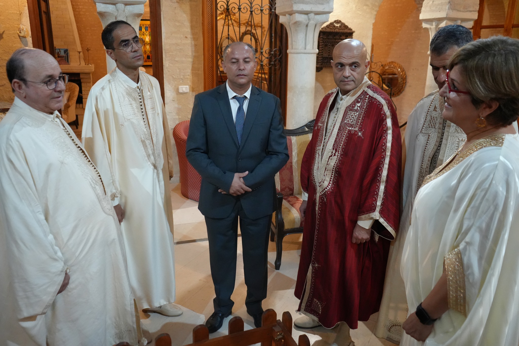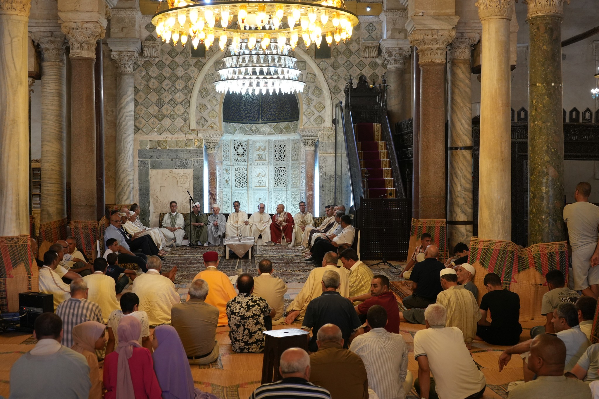 وتوجّه السيد سفيان تقية بمعية والي الجهة إلى معلم جامع عقبة بن نافع، حيث واكب الموكب الديني الرسمي المنظم بمناسبة إحياء ذكرى المولد النبوي الشريف، وشارك في تكريم عدد من الفائزين في مسابقات الحديث النبوي الشريف وحفظ القرآن الكريم للفرع المحلي للرابطة. كما واكب عدداً من الأنشطة السياحية والعروض الاحتفالية التي أقيمت بالمناسبة بمحيط جامع عقبة بن نافع وساحة أولاد فرحان. واطّلع بالمناسبة، على وضعية النظافة والعناية بالبيئة، مثمّنا المجهودات المبذولة في هذا المجال من قبل السلط الجهوية، ومؤكدا أنّ تحسين المشهد العام بالمسالك السياحية يُعدّ عنصرًا أساسيًا في تعزيز صورة الجهة.