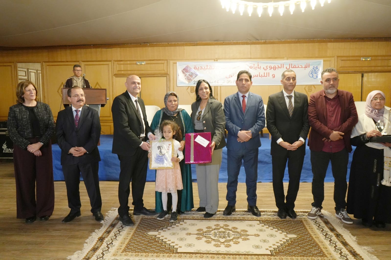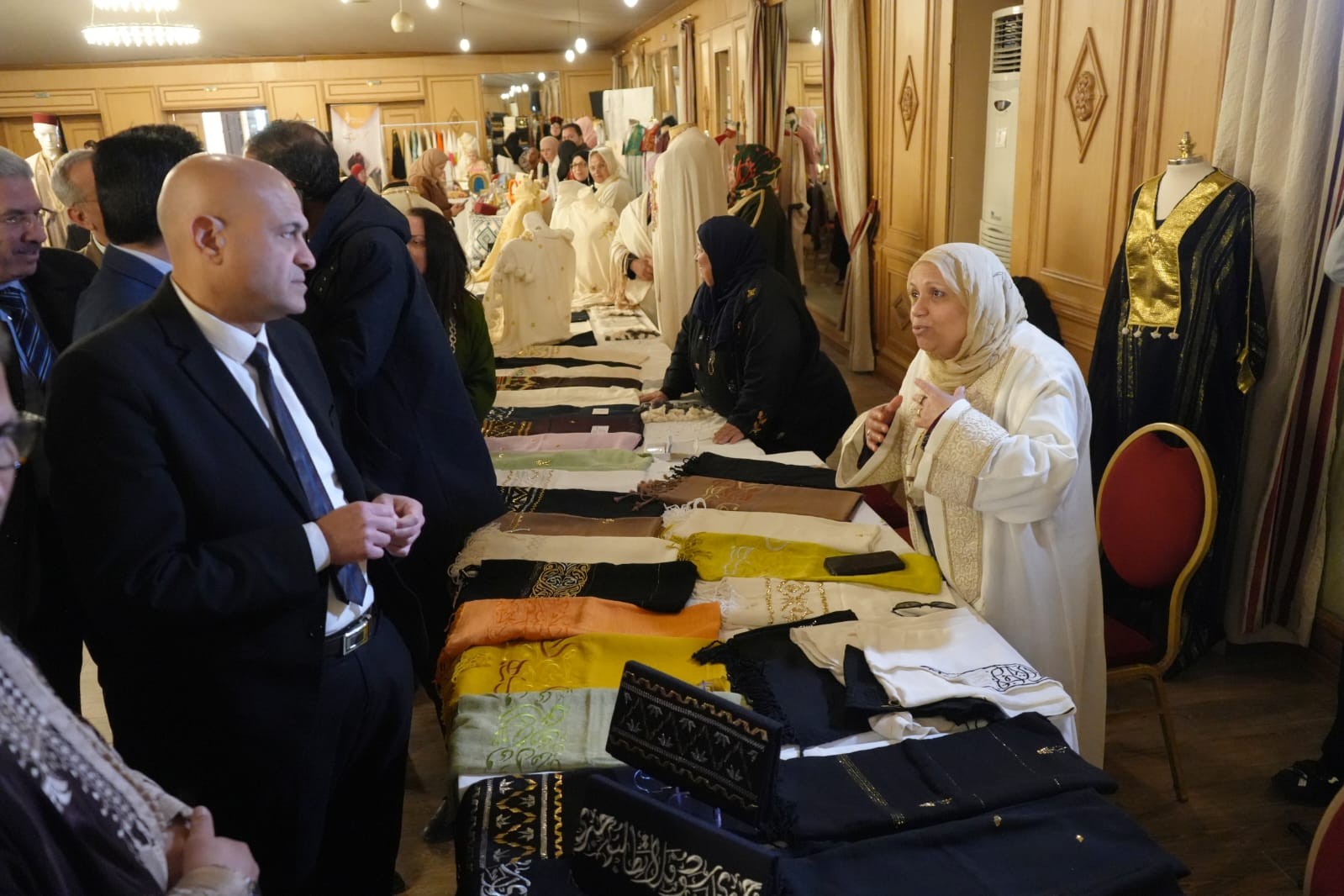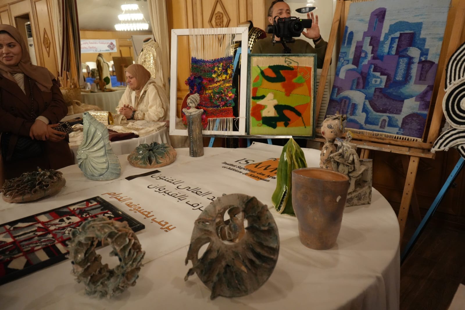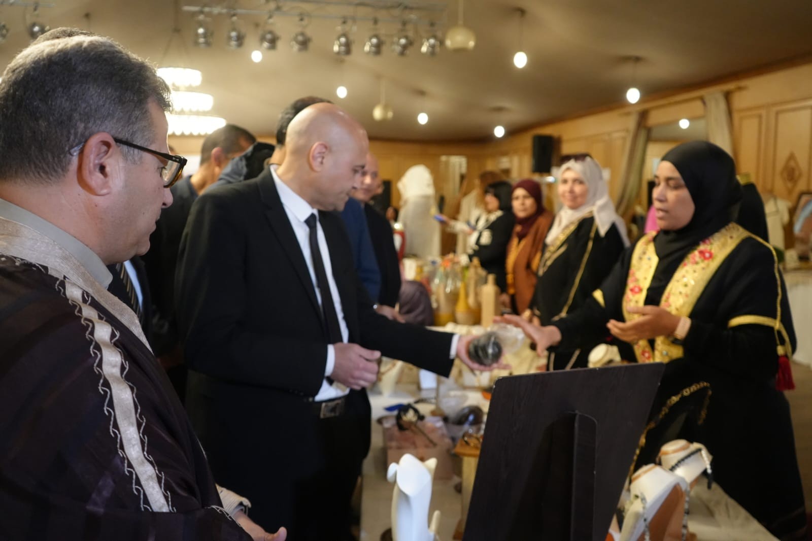 وبالمناسبة إطلع على أبرز الابتكارات في قطاع الصناعات التقليدية ونماذج من الموروث القيرواني منها الحايك والزربية والمقروض ... والاستماع الى مشاغل العارضين كما تولى تكريم عدد من الحرفيين والحرفيات تثمينا لمساهمتهم في تطوير قطاع الصناعات التقليدية وتكريم عدد من رياض الأطفال لمساهمتهم في تنشيط وتقديم بعض العروض
