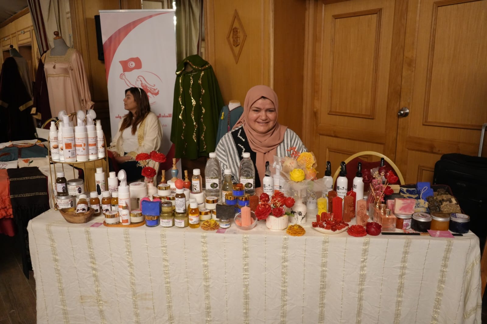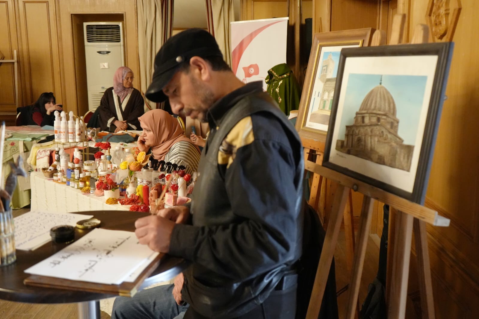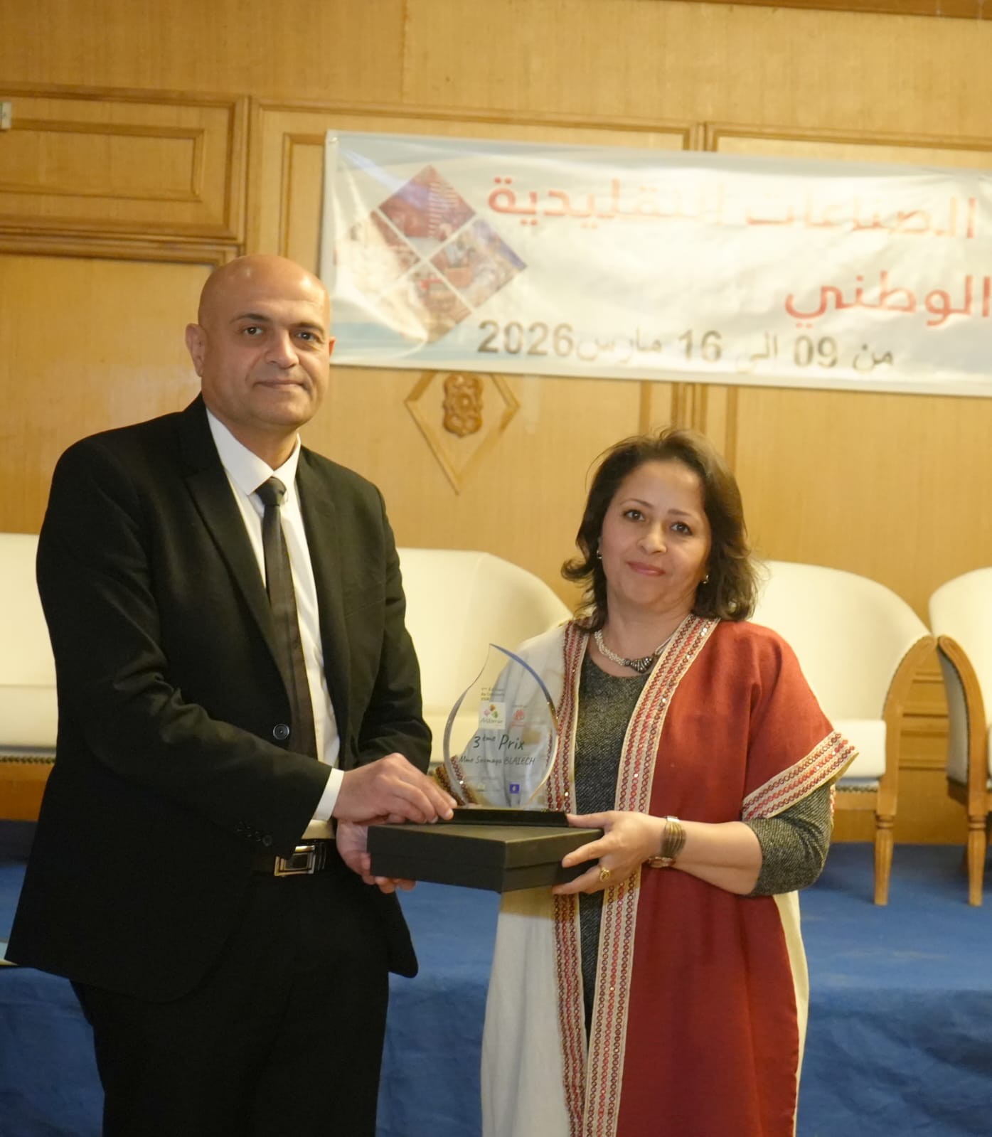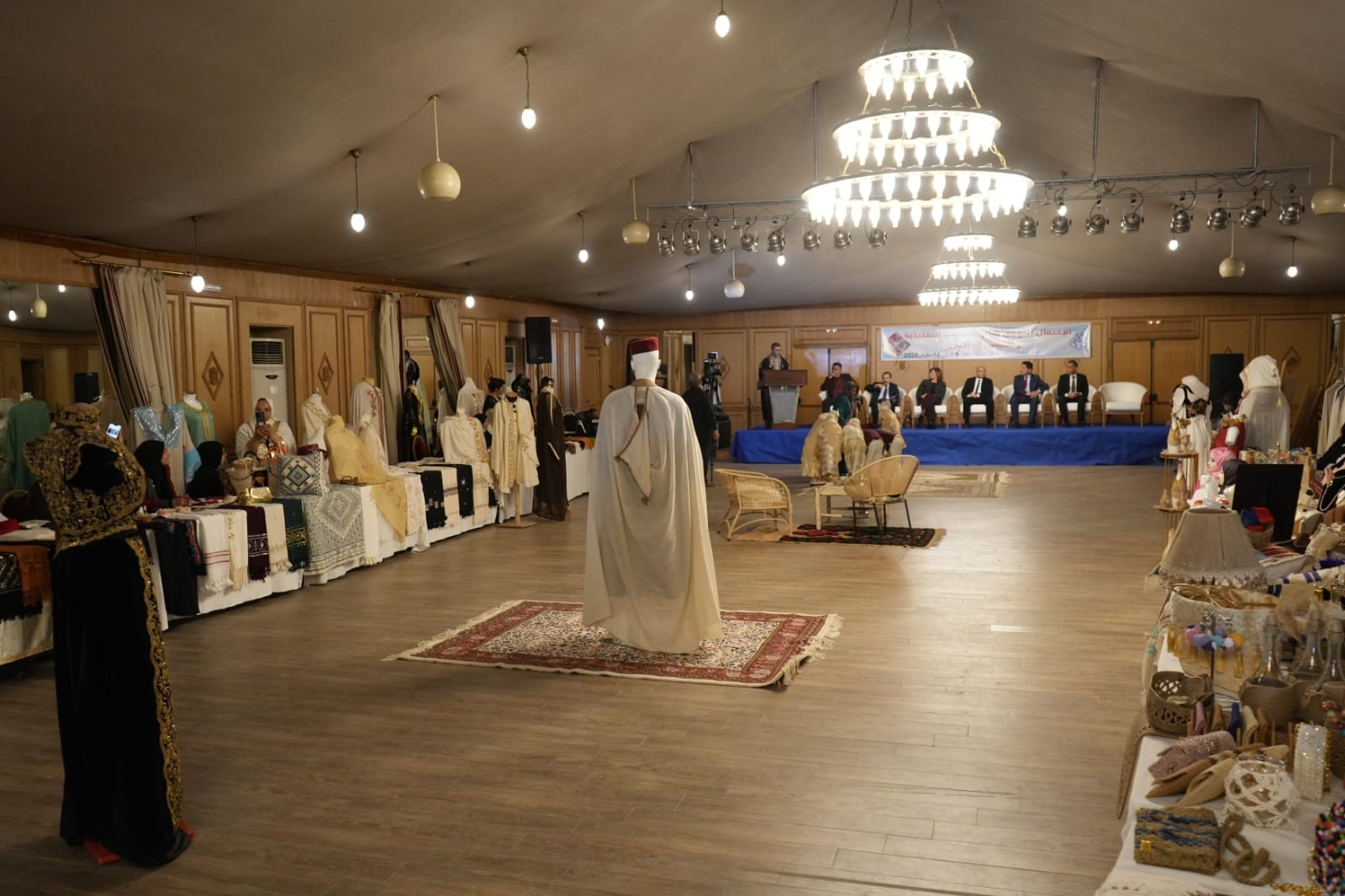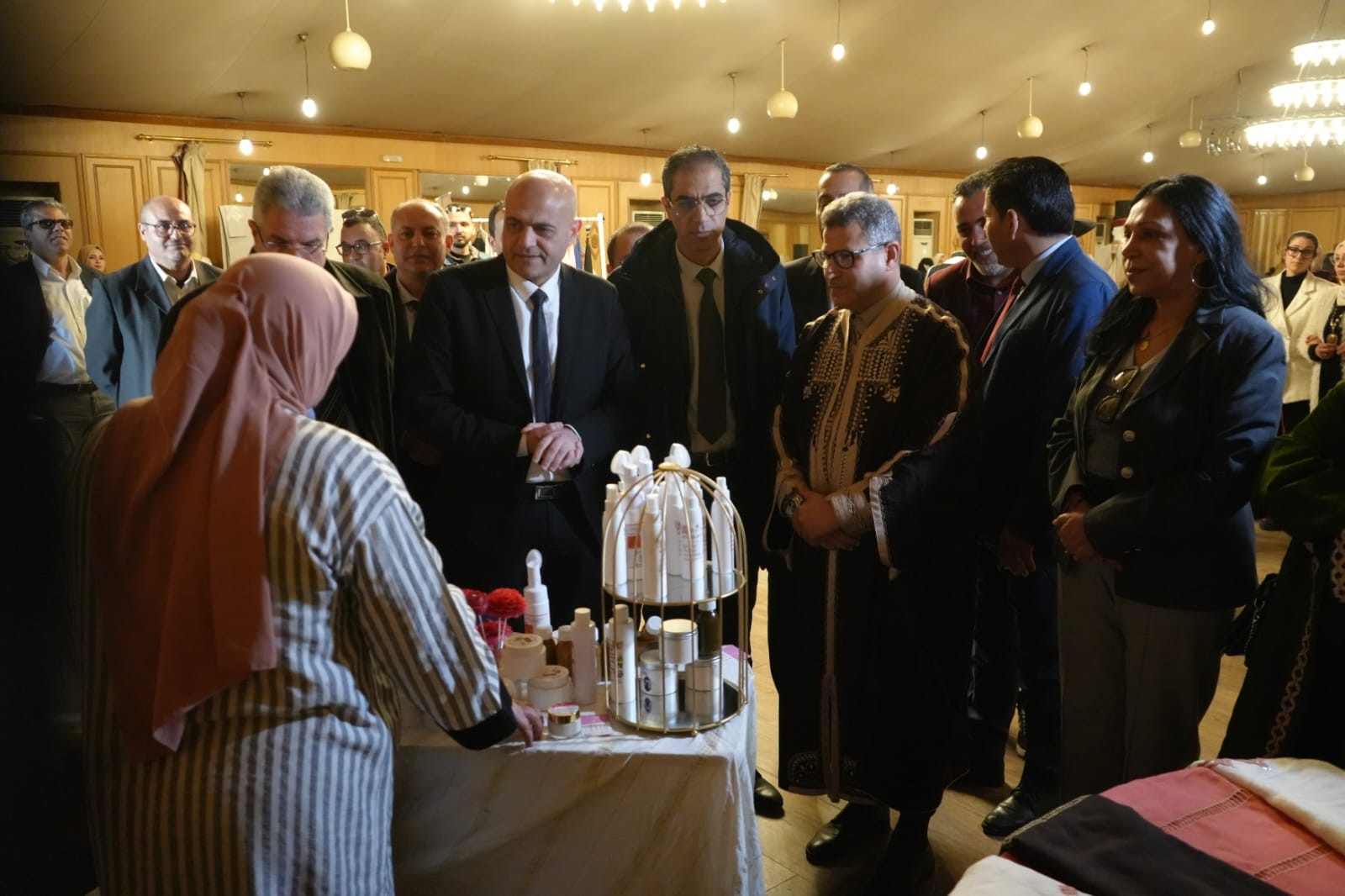 وبالمناسبة إطلع على أبرز الابتكارات في قطاع الصناعات التقليدية ونماذج من الموروث القيرواني منها الحايك والزربية والمقروض ... والاستماع الى مشاغل العارضين كما تولى تكريم عدد من الحرفيين والحرفيات تثمينا لمساهمتهم في تطوير قطاع الصناعات التقليدية وتكريم عدد من رياض الأطفال لمساهمتهم في تنشيط وتقديم بعض العروض