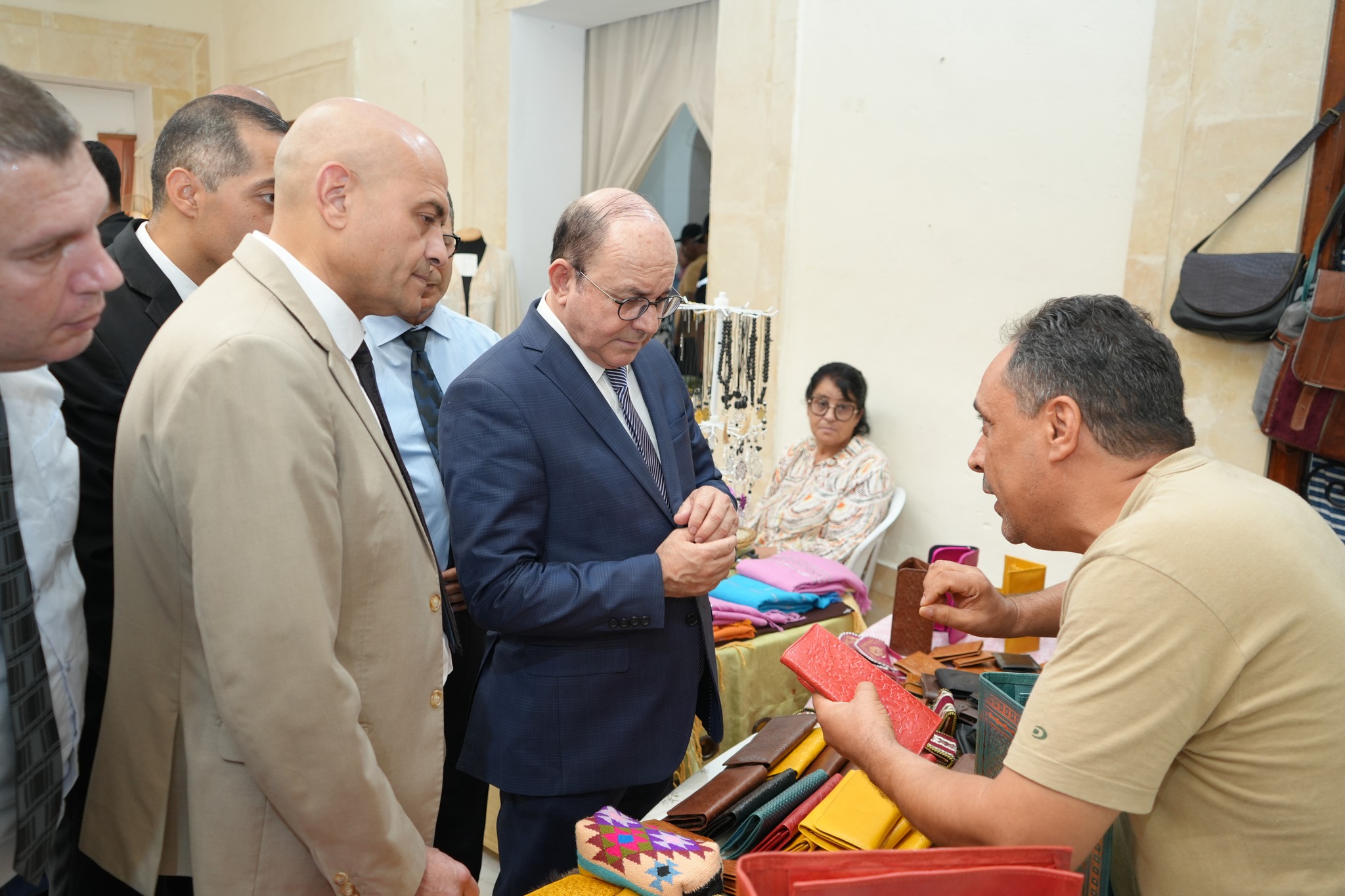 وفي إطار متابعة سير نشاط قطاع الصناعات التقليدية، قام الوزير رفقة والي الجهة بزيارة عدد من المعارض المنتظمة بمناسبة الاحتفالات بذكرى المولد النبوي الشريف، على غرار المعرض الوطني للصناعات التقليدية بفضاء مركز تقديم التراث القيرواني، الذي ينظمه الديوان الوطني للصناعات التقليدية بمشاركة 94 حرفياً وحرفية من مختلف الولايات، والذي شهد إقبالا واسعا من الزوار التونسيين والسياح الأجانب، ثم عاين مغازة معتمدة ذات طابع مميز مختصة في بيع الزرابي ومنتوجات الصناعات التقليدية، إضافة إلى الاطلاع على ورشات نسيج الحايك بسوق الجرابة.