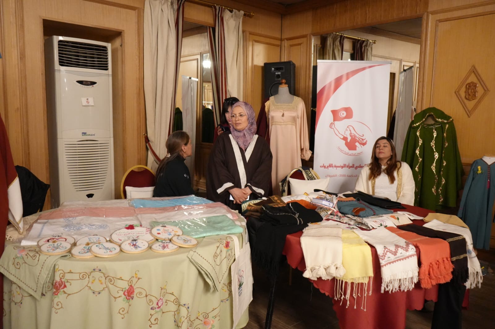 وبالمناسبة إطلع على أبرز الابتكارات في قطاع الصناعات التقليدية ونماذج من الموروث القيرواني منها الحايك والزربية والمقروض ... والاستماع الى مشاغل العارضين كما تولى تكريم عدد من الحرفيين والحرفيات تثمينا لمساهمتهم في تطوير قطاع الصناعات التقليدية وتكريم عدد من رياض الأطفال لمساهمتهم في تنشيط وتقديم بعض العروض